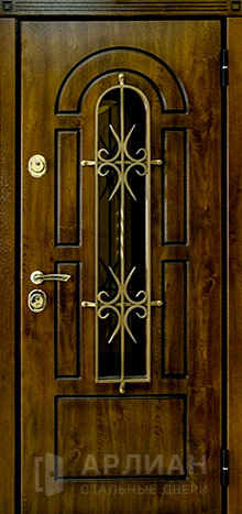 Утепленная входная дверь для коттеджа с кованными элементами №28
